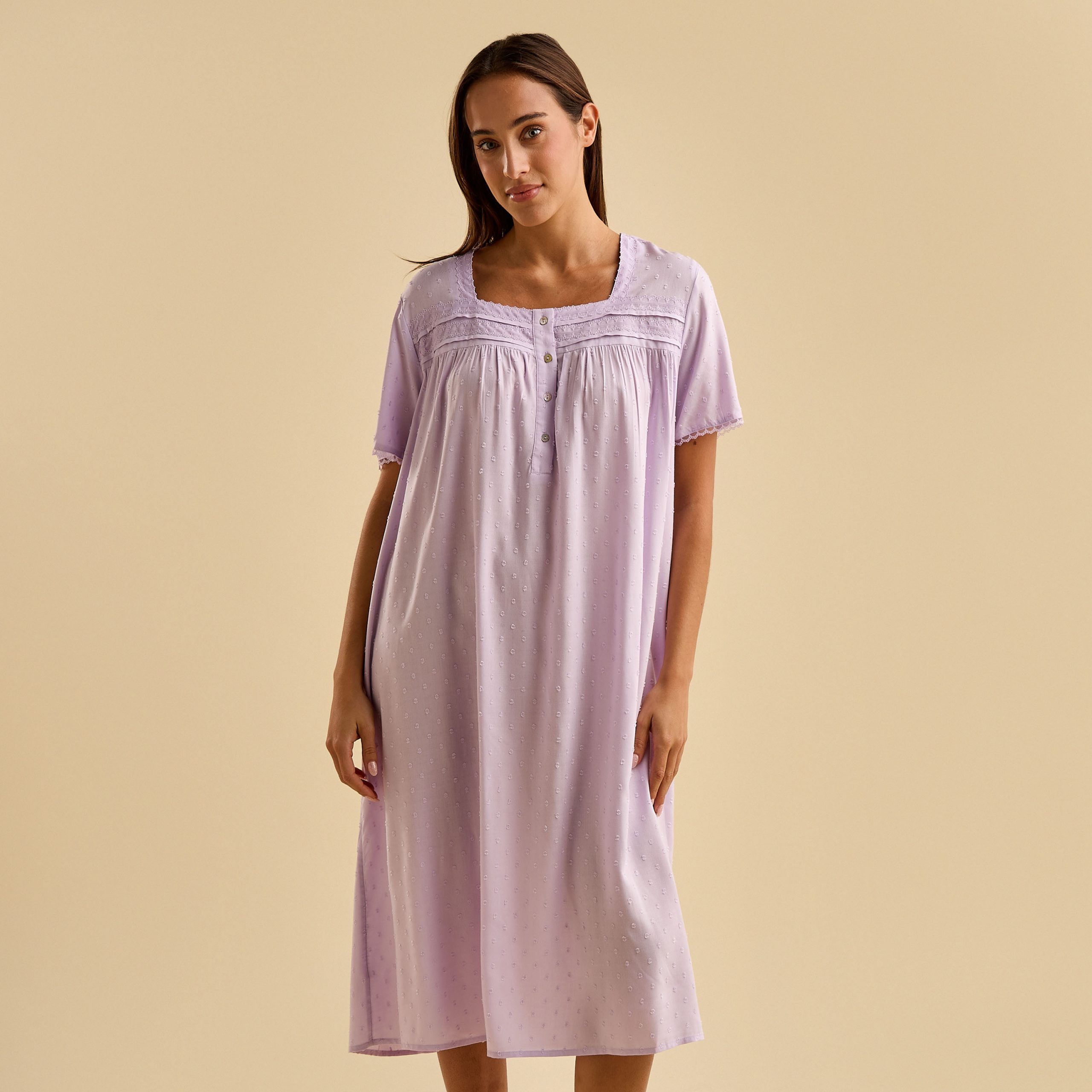 Soft and breathable dobby night dress with delicate lace detailing, perfect for comfortable and stylish sleep.