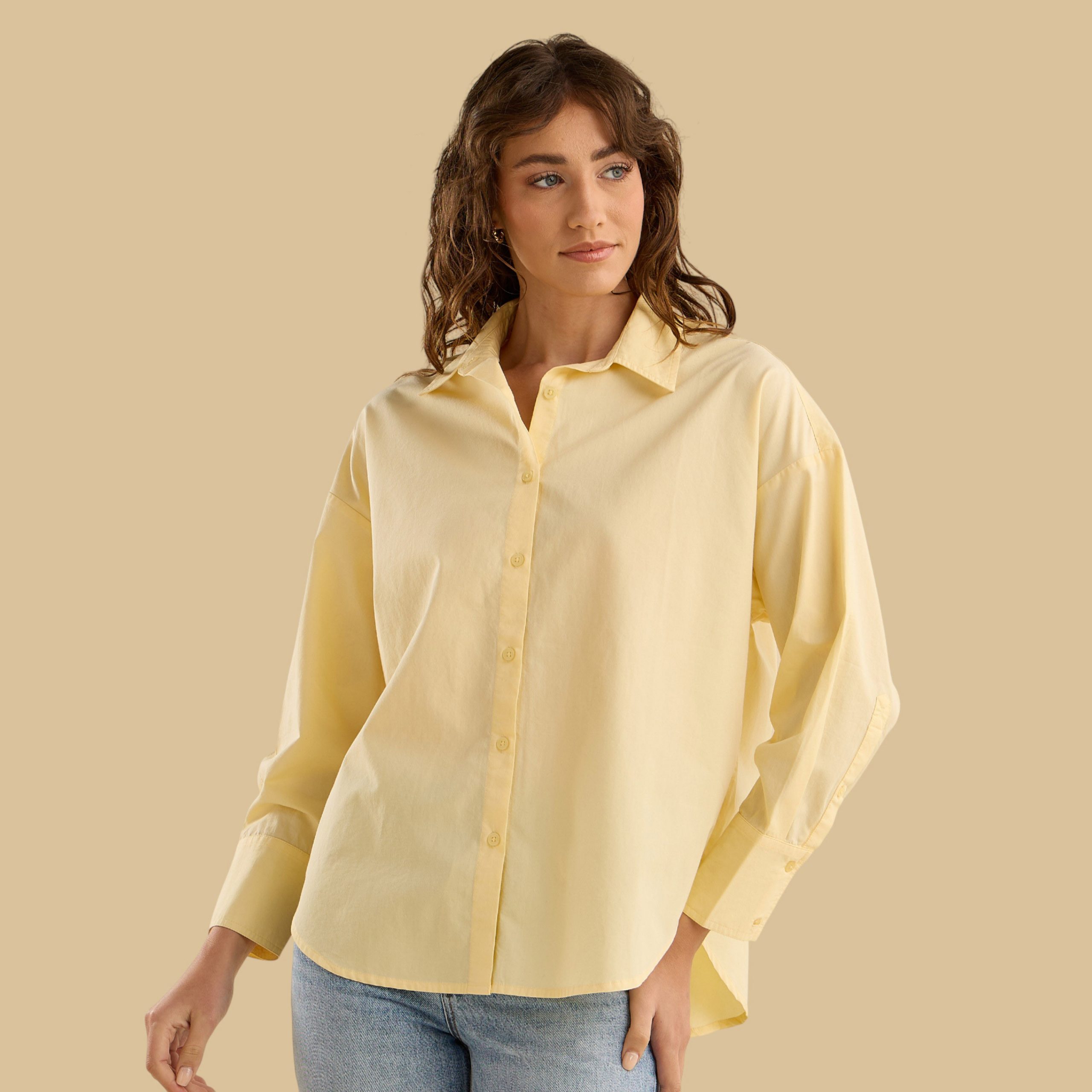 Relaxed-fit poplin shirt with a trendy oversized design, perfect for casual outings, office wear, or layering.