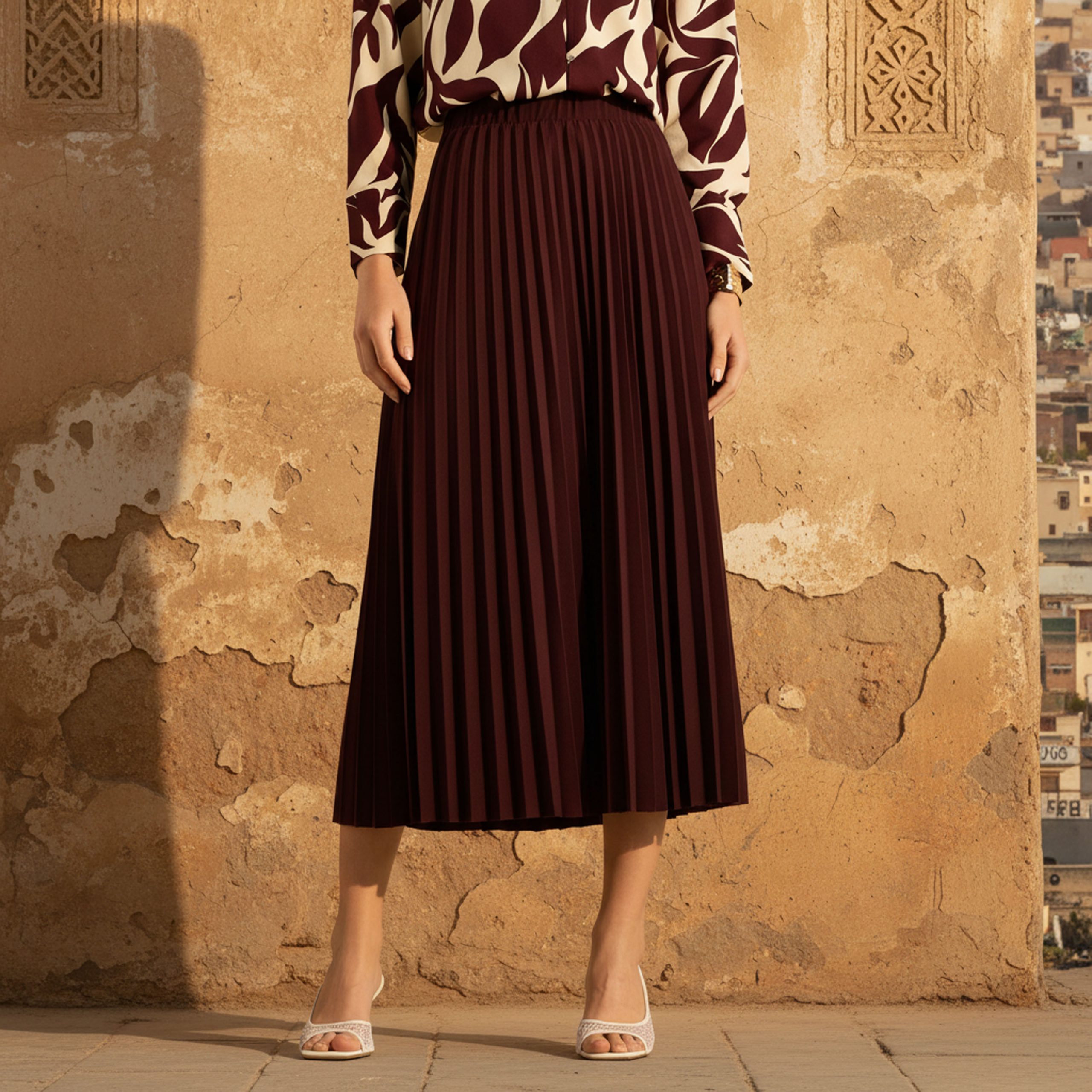 Chic pleated midi skirt designed for effortless style, perfect for casual, office, or semi-formal wear.