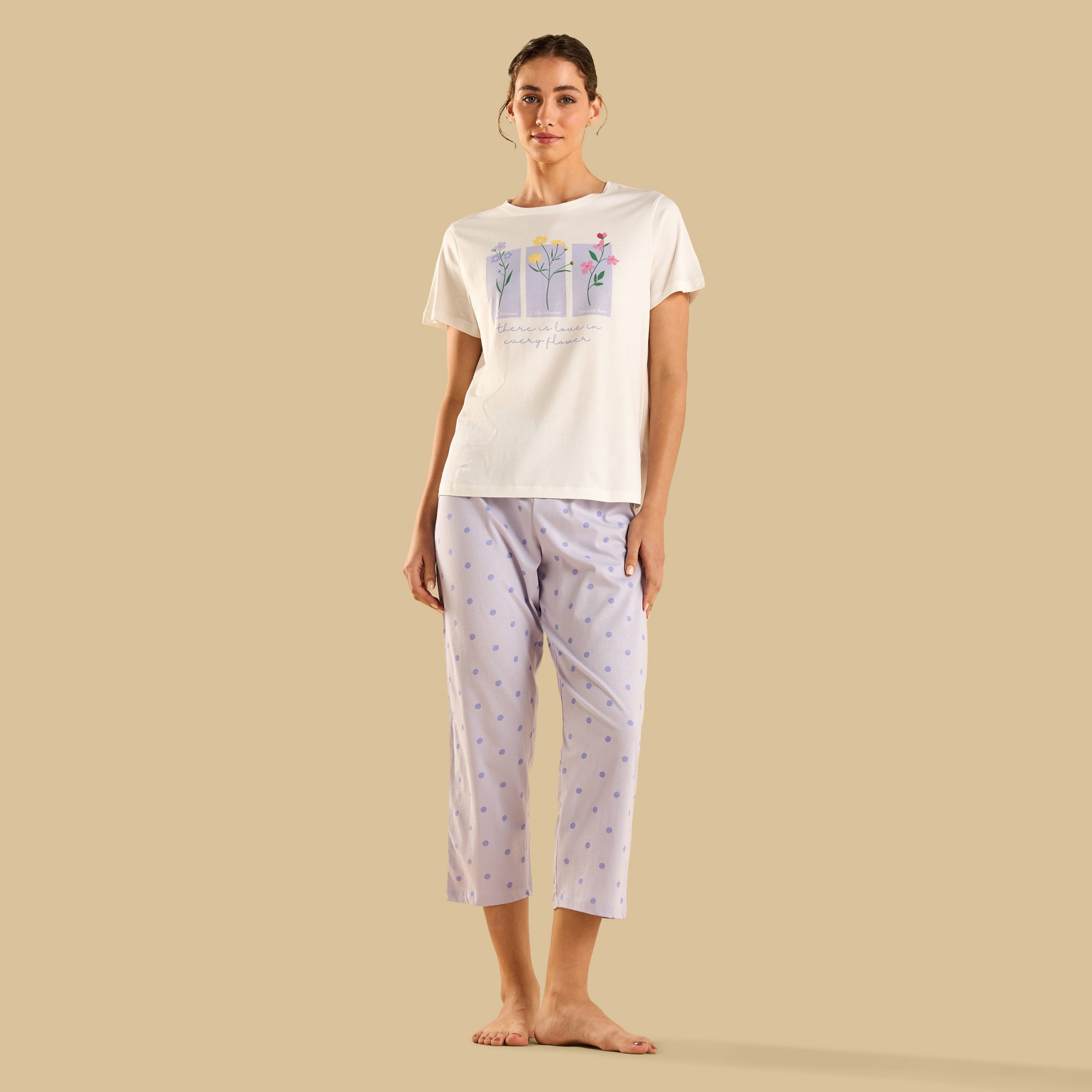 Relax in style with this Polka Dot Print Cotton Pyjama Set. Crafted from soft, breathable cotton, it provides ultimate comfort for sleep or lounging at home. The classic polka dot print adds a charming touch, while the relaxed fit ensures easy movement and cozy wear. A practical and stylish addition to your loungewear collection.