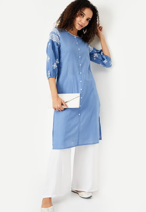 Straight kurta with delicate sleeve embroidery, perfect for casual outings, office, or festive occasions.