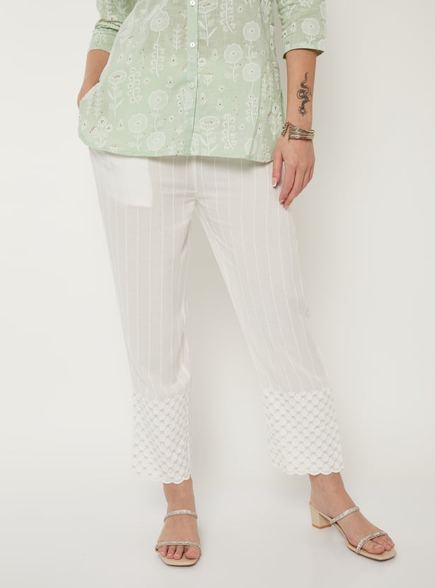Straight-fit pants with delicate embroidery, perfect for casual outings, office, or festive occasions.