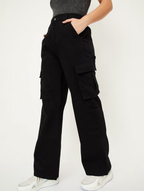 Women Solid Cargo Jeans