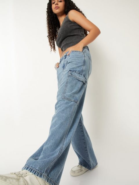Women Washed Denim Cargos