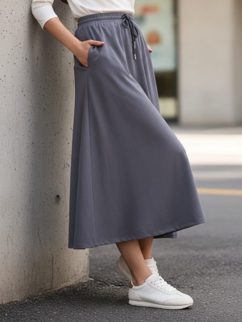 Plain Viscose Flared Skirt