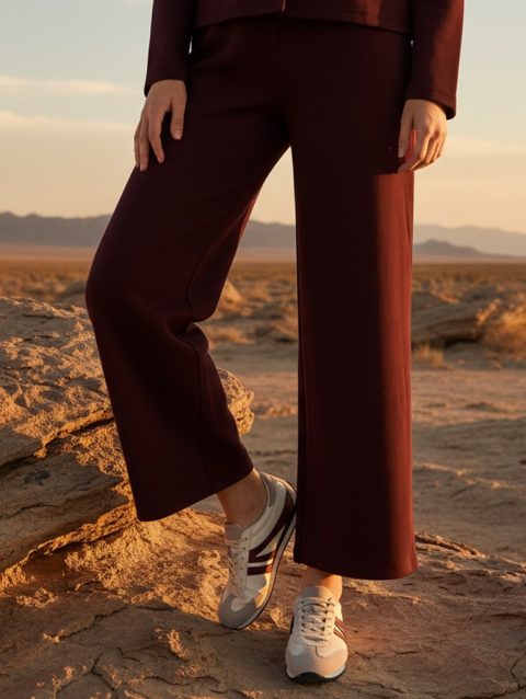 Plain Wide Leg Pique Pants