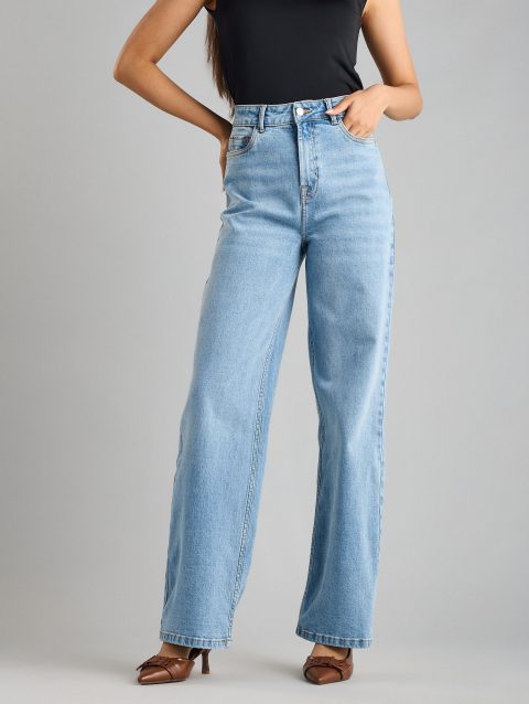 Plain Stretchable Wide Leg Jeans
