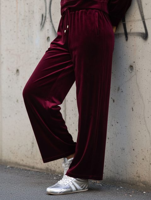 Plain Velour Wide Leg Pants
